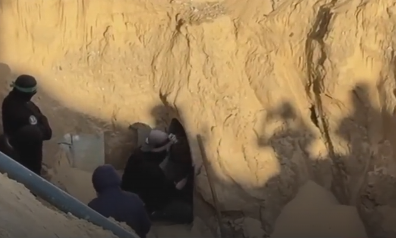 وفي السياق ذاته، عرضت قناة “العربية/الحدث” لقطات حصرية تظهر لحظة العثور على الجثة داخل نفق مدمر شمال خان يونس، بعد أعمال حفر استمرت أسبوعًا باستخدام معدات مصرية ثقيلة في منطقة مدينة حمد.
